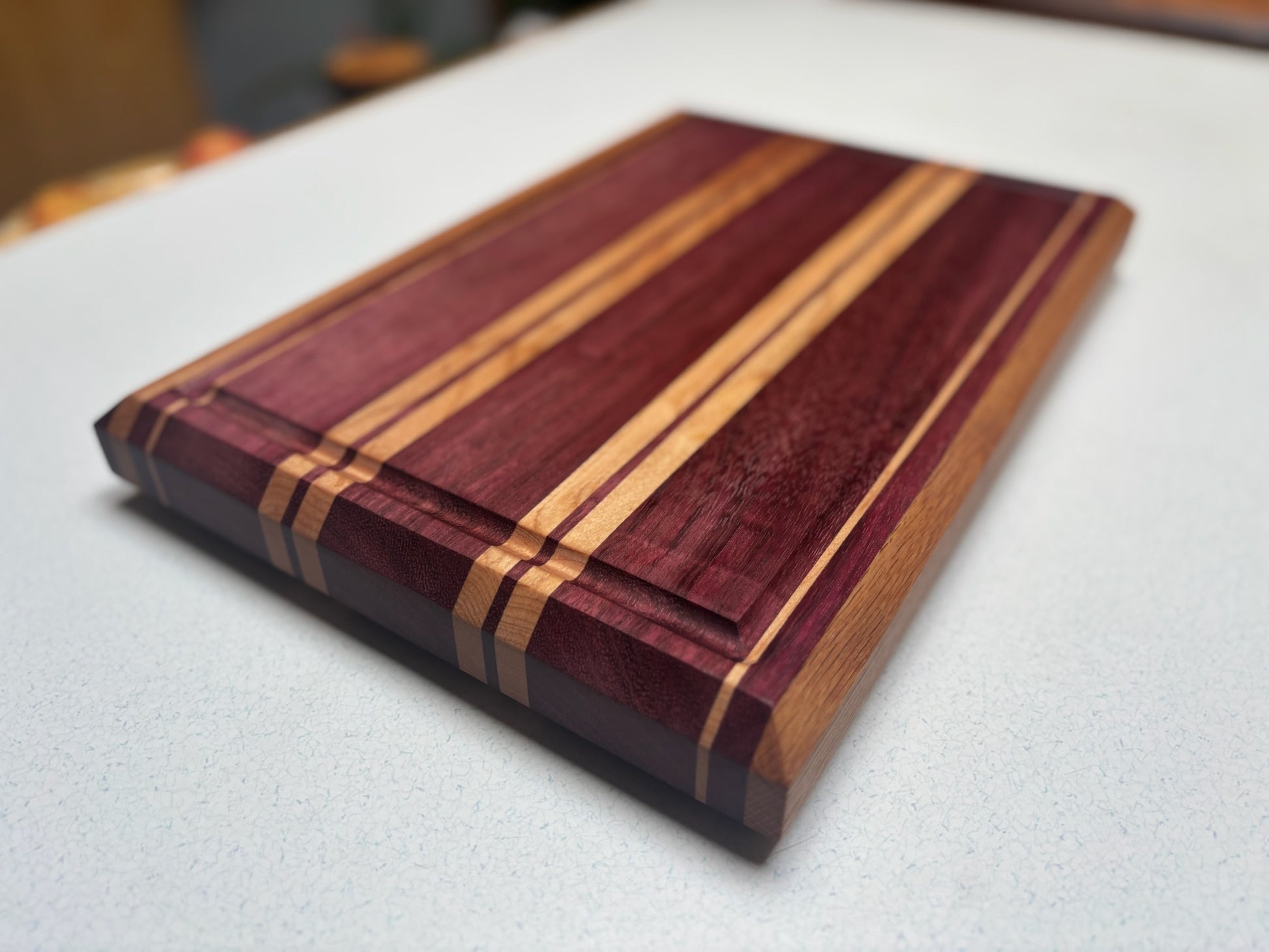 Medium Butcher Block- Purple Heart, Cherry & Red Oak