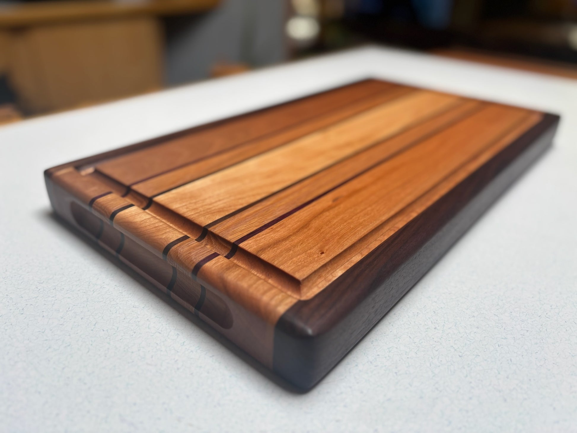 Medium Butcher Block- Cherry, Maple, Black Walnut and Red Oak with Black Walnut accents.